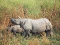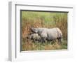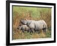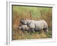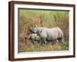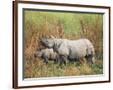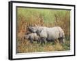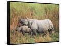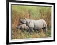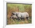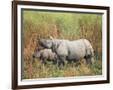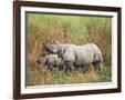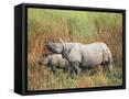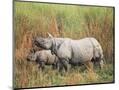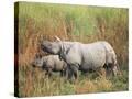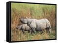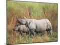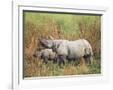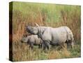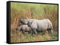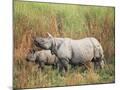 Indian One-Horned Rhinoceros (Rhino), Rhinoceros Unicornis, with Calf, Assam, India