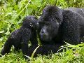 Infant Mountain Gorilla Leans in to Kiss Silverback, Bwindi Impenetrable National Park, Uganda