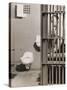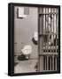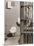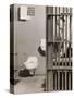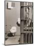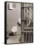 Inmate sitting on bed with open cell door Photo Print