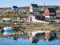 Inuit village Oqaatsut (once called Rodebay) located in Disko Bay. Greenland Photo Print