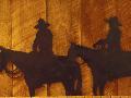 Iron Sculpture of Cowboys at Boulder River Ranch, Montana, USA