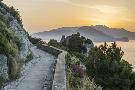 Italy, Isle of Capri, sunrise over the Sorrento Peninsula