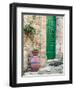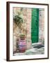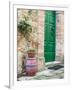Italy, Tuscany, Monticchiello. Bright Green Door