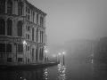 Italy, Venice. Building with Grand Canal on Foggy Morning
