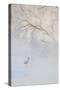 Japan, Hokkaido, Tsurui. Hooded Crane Walks in River at Sunrise