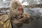 Japan, Jigokudani Monkey Park. Japanese macaque with nursing baby.