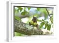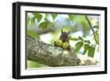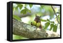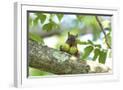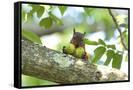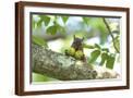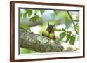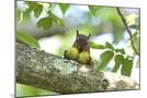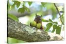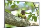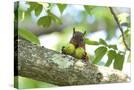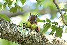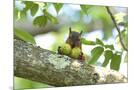 Japanese Squirrel (Sciurus Lis) Carrying Two Walnut (Juglans Ailantifolia)