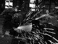 Japanese Worker Cutting Steel Pipe W. Huge Power Saw at Yawata Steel Mill
