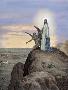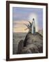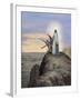 Jesus Tempted by the Devil. Engraving. Colored. Giclee Wall Art