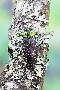 Jewel Beetle Lampropepla Rothschildi with False Eyes Climbing Up a Lichen Covered Branch