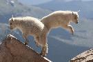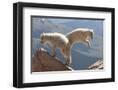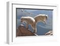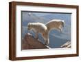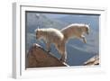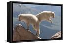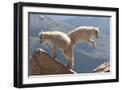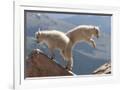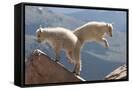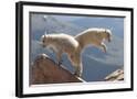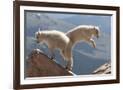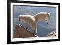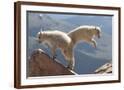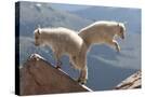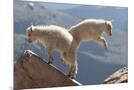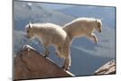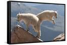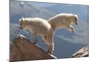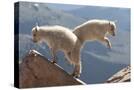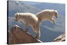Juvenile Rocky Mountain Goats (Oreamnos Americanus) Playing on the Top of a Rocky Outcrop