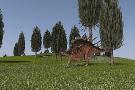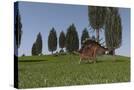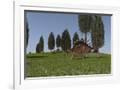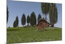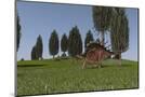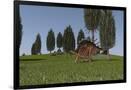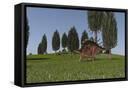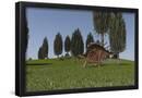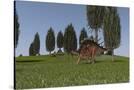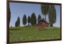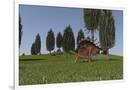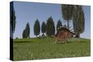 Kentrosaurus and a Coelophysis Walking across an Open Field Wall Art Print