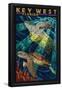 Key West, Florida - Sea Turtle Mosaic Wall Art Print