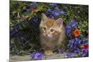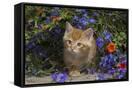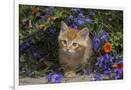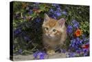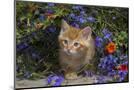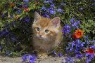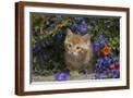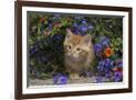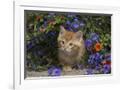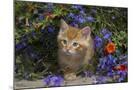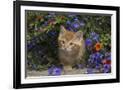 Kitten on Garden Wall with Flowers, Wheaton, Illinois, USA