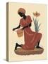 Kneeling Left Weaving Basket - Orange Dress