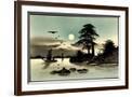 Künstler Handgemalt, Japan, Mond, Boot Giclee Wall Art