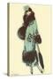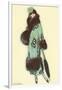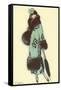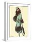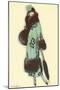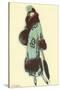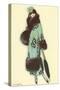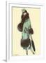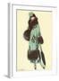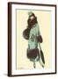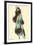 Lady in Fur-Trimmed Coat with Umbrella