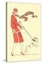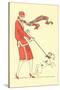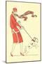 Lady in Wind Restraining Dog