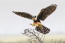 Laguna Atascosa Nwr, Texas. Aplomado Falcon Landing on Yucca