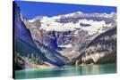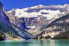 Lake Louise canoes, Leroy Glaciers reflection, Banff National Park, Alberta, Canada