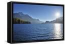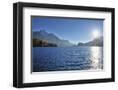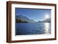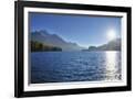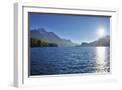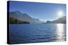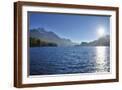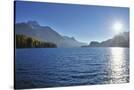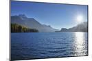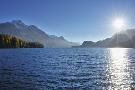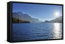 Lake with sun, Lake Silsersee, Engadin, Grisons, Switzerland