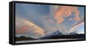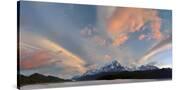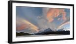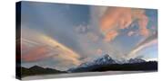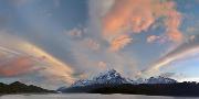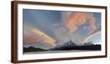 Landscape with Lake Grey and mountains at sunset, Patagonia, Chile