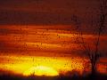 Large Flock of Blackbirds Silhouetted at Sunset, Missouri, USA