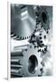 Large Industrial Gears Set Against Titanium And In A Blue Metallic Toning Concept Wall Art Print