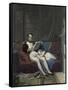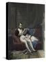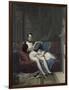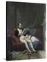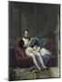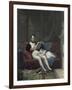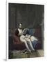 Le roi de Rome endormi sur les genoux de son père dans son cabinet de travail des Tuileries.