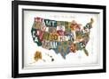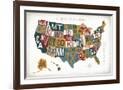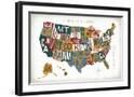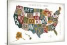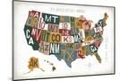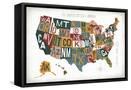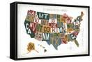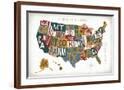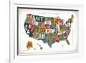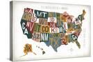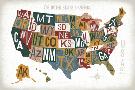 Letterpress USA Map Warm Wall Art Print