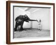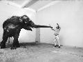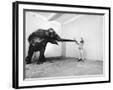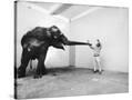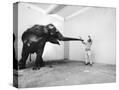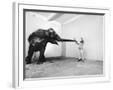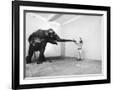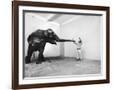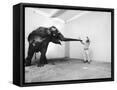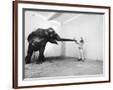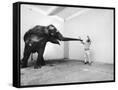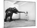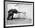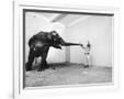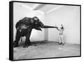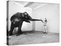 Life Photographer Arthur Schatz with Elephant While Shooting Story on the Franklin Park Zoo