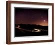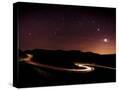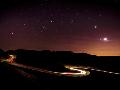 Light Trails and Stars Cape with Venus, Jupiter, Orion and Moon, Peak District Nat'l Park, England