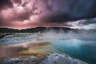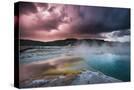 Lightining Illuminates The Sunset Sky Over Biscuit Basin, Yellowstone National Park Photo Print