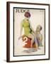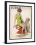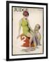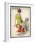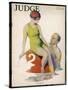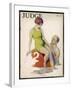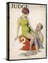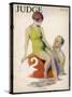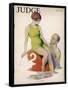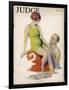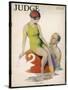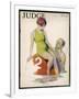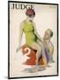 Lime Green Tank Style One- Piece Bathing Costume Worn with a Red Bathing Cap Wall Art Print
