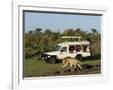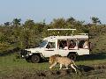 Lion (Panthera Leo) and Safari Vehicle, Masai Mara, Kenya, East Africa, Africa