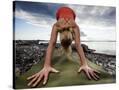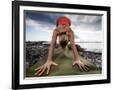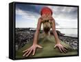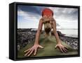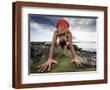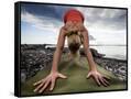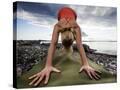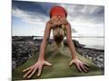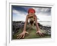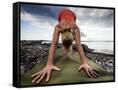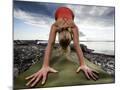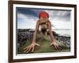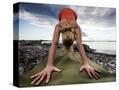 Lisa Eaton Holds a Downward Dog Yoga Pose on the Beach of Lincoln Park - West Seattle, Washington