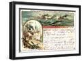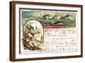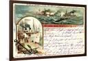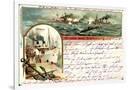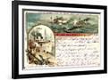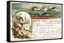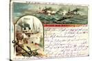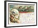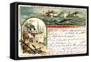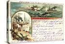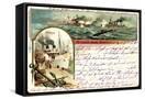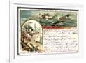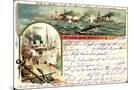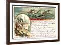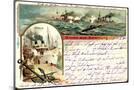 Litho Hamburg, Dampfer Cobra, U Boot, Kriegschiffe