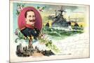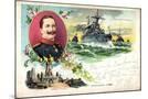 Litho Panzerschiff Brandenburg, Kaiser Wilhelm II Giclee Wall Art