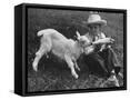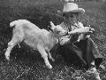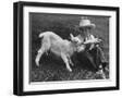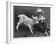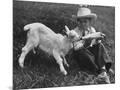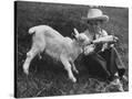Little White Goat Being Fed from Bottle by Little Boy, at White Horse Ranch