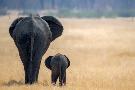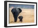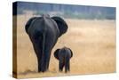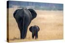 Little and Large, elephant calf and mother, Hwange National Park, Zimbabwe, Africa