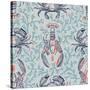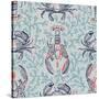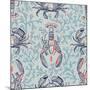 Lobster and Crab Coastal Nostalgia Mint Pattern
