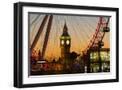 London Eye (Millennium Wheel) frames Big Ben at sunset, London, England, United Kingdom, Europe