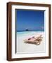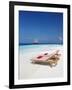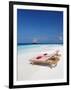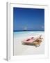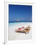 Lounge Chairs on Beach and Yacht, Maldives, Indian Ocean, Asia
