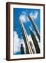 Low Angle View against Coludy Blue Sky of Tall Spiny Organ Pipe Cactus on Aruba Growing on the Ayo Photo Print