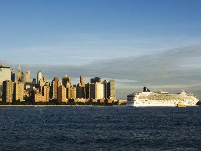 Lower Manhattan Skyline and Cruise Ship Across the Hudson River, New York City, New York, USA