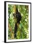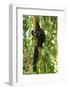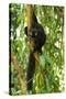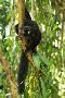 Madagascar, Lake Ampitabe. Male black lemur with bright orange eyes.