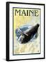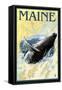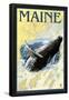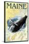Maine - Humpback Whale and Nautical Chart Wall Art Print