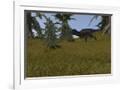 Majungasaurus Running across a Grassy Field Wall Art Print