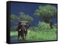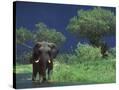 Male Elephant under Stormy Skies on Bank of Zambezi River, Zimbabwe