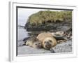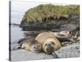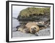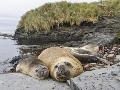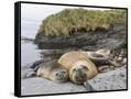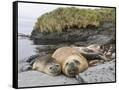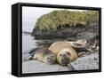 Male Southern elephant seal after breeding period on the Falkland Islands. Framed Canvas Art